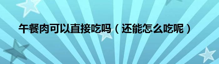 大家好,伊人來為大家解答以上問題。午餐肉可以直接吃嗎,還能怎么吃呢很多人還不知道,現(xiàn)在讓我們一起來看看吧!