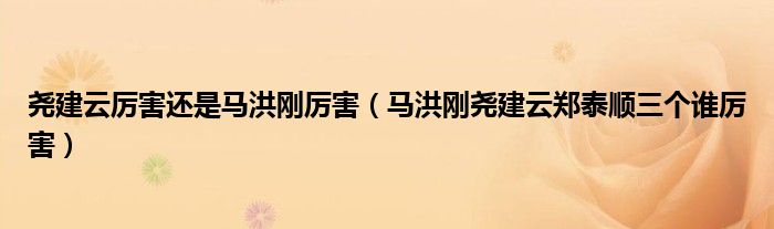 大家好,小生來為大家講解下。堯建云厲害還是馬洪剛厲害,馬洪剛堯建云鄭泰順三個誰厲害很多人還不知道,現(xiàn)在讓我們一起來看看吧!