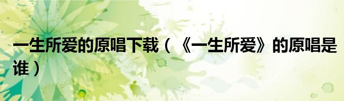 大家好,小生來為大家講解下。一生所愛的原唱下載,《一生所愛》的原唱是誰(shuí)很多人還不知道,現(xiàn)在讓我們一起來看看吧!