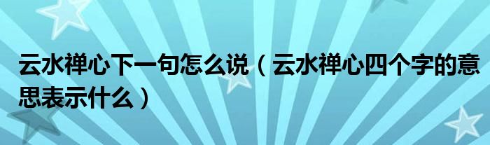 大家好,小生來為大家講解下。云水禪心下一句怎么說,云水禪心四個字的意思表示什么很多人還不知道,現(xiàn)在讓我們一起來看看吧!
