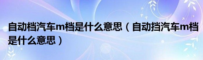 大家好,小生來為大家講解下。自動檔汽車m檔是什么意思,自動擋汽車m檔是什么意思很多人還不知道,現(xiàn)在讓我們一起來看看吧!