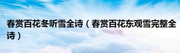 大家好,小生來為大家講解下。春賞百花冬聽雪全詩,春賞百花東觀雪完整全詩很多人還不知道,現(xiàn)在讓我們一起來看看吧!