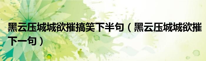 大家好,小生來為大家講解下。黑云壓城城欲摧搞笑下半句,黑云壓城城欲摧下一句很多人還不知道,現(xiàn)在讓我們一起來看看吧!