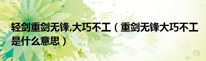 大家好,小生來(lái)為大家講解下。輕劍重劍無(wú)鋒,大巧不工,重劍無(wú)鋒大巧不工是什么意思很多人還不知道,現(xiàn)在讓我們一起來(lái)看看吧!