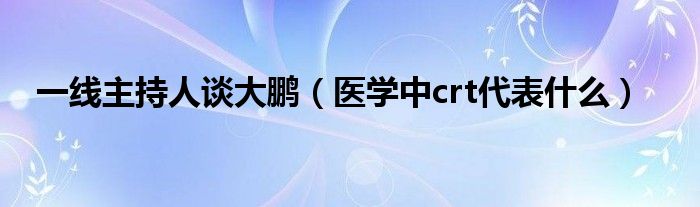 大家好,小生來為大家講解下。一線主持人談大鵬,醫(yī)學(xué)中crt代表什么很多人還不知道,現(xiàn)在讓我們一起來看看吧!