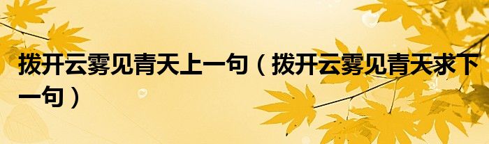 大家好,小生來為大家講解下。撥開云霧見青天上一句,撥開云霧見青天求下一句很多人還不知道,現(xiàn)在讓我們一起來看看吧!