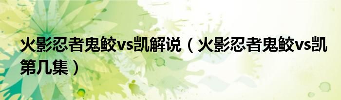 大家好,小生來為大家講解下?;鹩叭陶吖眭ovs凱解說,火影忍者鬼鮫vs凱第幾集很多人還不知道,現(xiàn)在讓我們一起來看看吧!