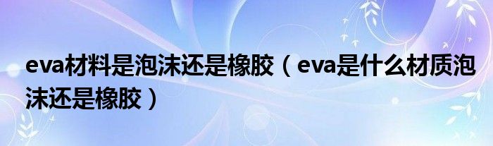 大家好,小生來為大家講解下。eva材料是泡沫還是橡膠,eva是什么材質(zhì)泡沫還是橡膠很多人還不知道,現(xiàn)在讓我們一起來看看吧!