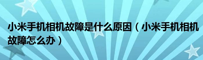 大家好,小生來(lái)為大家講解下。小米手機(jī)相機(jī)故障是什么原因,小米手機(jī)相機(jī)故障怎么辦很多人還不知道,現(xiàn)在讓我們一起來(lái)看看吧!