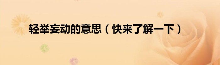 大家好,伊人來(lái)為大家解答以上問(wèn)題。輕舉妄動(dòng)的意思,快來(lái)了解一下很多人還不知道,現(xiàn)在讓我們一起來(lái)看看吧!