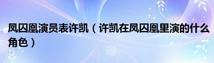 大家好,小生來為大家講解下。鳳囚凰演員表許凱,許凱在鳳囚凰里演的什么角色很多人還不知道,現在讓我們一起來看看吧!