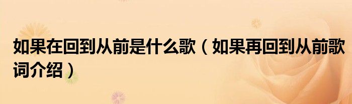 大家好,伊人來(lái)為大家解答以上問(wèn)題。如果在回到從前是什么歌,如果再回到從前歌詞介紹很多人還不知道,現(xiàn)在讓我們一起來(lái)看看吧!