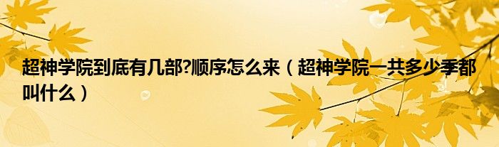 大家好,小生來(lái)為大家講解下。超神學(xué)院到底有幾部?順序怎么來(lái),超神學(xué)院一共多少季都叫什么很多人還不知道,現(xiàn)在讓我們一起來(lái)看看吧!