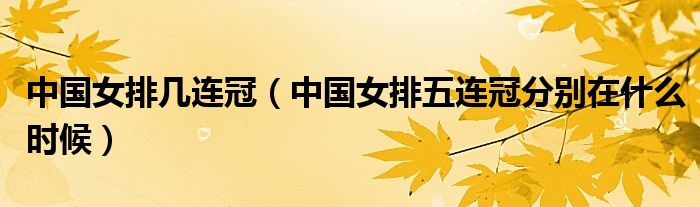 大家好,伊人來(lái)為大家解答以上問(wèn)題。中國(guó)女排幾連冠,中國(guó)女排五連冠分別在什么時(shí)候很多人還不知道,現(xiàn)在讓我們一起來(lái)看看吧!