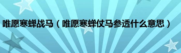 大家好,小生來為大家講解下。唯愿寒蟬戰(zhàn)馬,唯愿寒蟬仗馬參透什么意思很多人還不知道,現(xiàn)在讓我們一起來看看吧!