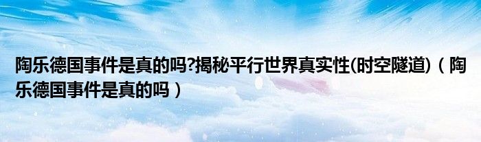 大家好,小生來為大家講解下。陶樂德國事件是真的嗎?揭秘平行世界真實性(時空隧道),陶樂德國事件是真的嗎很多人還不知道,現(xiàn)在讓我們一起來看看吧!