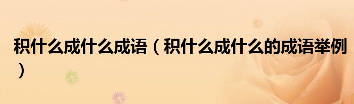 大家好,伊人來為大家解答以上問題。積什么成什么成語,積什么成什么的成語舉例很多人還不知道,現(xiàn)在讓我們一起來看看吧!