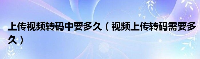 大家好,小生來為大家講解下。上傳視頻轉(zhuǎn)碼中要多久,視頻上傳轉(zhuǎn)碼需要多久很多人還不知道,現(xiàn)在讓我們一起來看看吧!