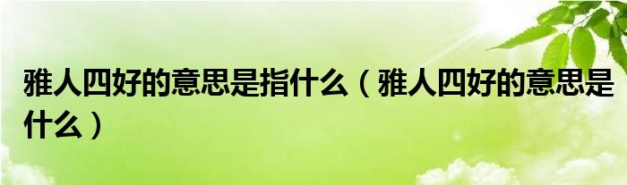 大家好,小生來(lái)為大家講解下。雅人四好的意思是指什么,雅人四好的意思是什么很多人還不知道,現(xiàn)在讓我們一起來(lái)看看吧!