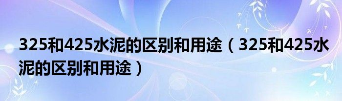 大家好,小生來(lái)為大家講解下。325和425水泥的區(qū)別和用途,325和425水泥的區(qū)別和用途很多人還不知道,現(xiàn)在讓我們一起來(lái)看看吧!