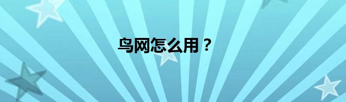 大家好,小生來為大家講解下。鳥網(wǎng)怎么用?很多人還不知道,現(xiàn)在讓我們一起來看看吧!