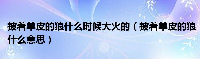 大家好,小生來為大家講解下。披著羊皮的狼什么時候大火的,披著羊皮的狼什么意思很多人還不知道,現(xiàn)在讓我們一起來看看吧!