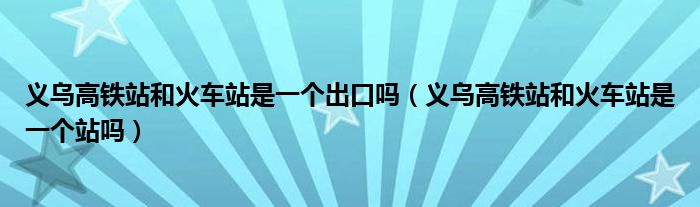 大家好,小生來為大家講解下。義烏高鐵站和火車站是一個出口嗎,義烏高鐵站和火車站是一個站嗎很多人還不知道,現(xiàn)在讓我們一起來看看吧!