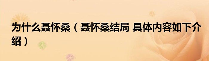 大家好,小生來(lái)為大家講解下。為什么聶懷桑,聶懷桑結(jié)局 具體內(nèi)容如下介紹很多人還不知道,現(xiàn)在讓我們一起來(lái)看看吧!