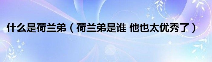 大家好,小生來為大家講解下。什么是荷蘭弟,荷蘭弟是誰 他也太優(yōu)秀了很多人還不知道,現(xiàn)在讓我們一起來看看吧!