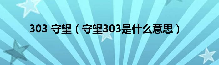 大家好,小生來為大家講解下。303 守望,守望303是什么意思很多人還不知道,現(xiàn)在讓我們一起來看看吧!