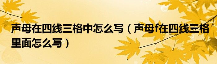 大家好,小生來為大家講解下。聲母在四線三格中怎么寫,聲母f在四線三格里面怎么寫很多人還不知道,現(xiàn)在讓我們一起來看看吧!