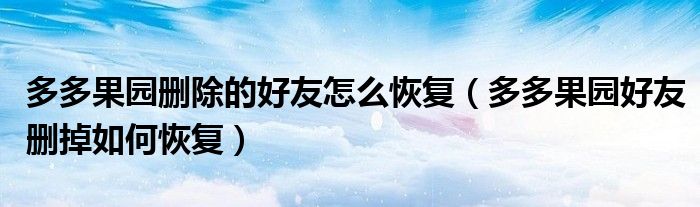 大家好,小生來(lái)為大家講解下。多多果園刪除的好友怎么恢復(fù),多多果園好友刪掉如何恢復(fù)很多人還不知道,現(xiàn)在讓我們一起來(lái)看看吧!