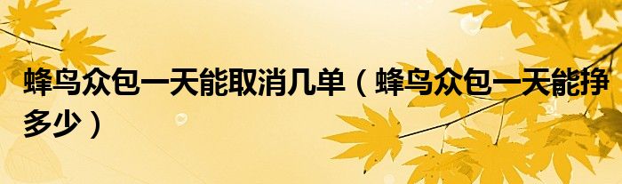 大家好,小生來為大家講解下。蜂鳥眾包一天能取消幾單,蜂鳥眾包一天能掙多少很多人還不知道,現(xiàn)在讓我們一起來看看吧!