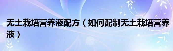 大家好,伊人來為大家解答以上問題。無土栽培營養(yǎng)液配方,如何配制無土栽培營養(yǎng)液很多人還不知道,現(xiàn)在讓我們一起來看看吧!