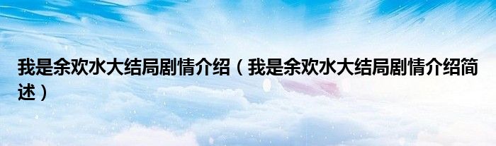 大家好,伊人來為大家解答以上問題。我是余歡水大結局劇情介紹,我是余歡水大結局劇情介紹簡述很多人還不知道,現(xiàn)在讓我們一起來看看吧!