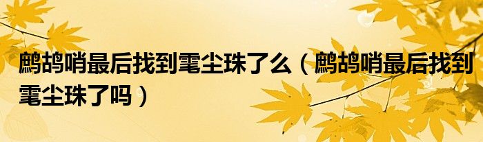大家好,小生來(lái)為大家講解下。鷓鴣哨最后找到雮塵珠了么,鷓鴣哨最后找到雮塵珠了嗎很多人還不知道,現(xiàn)在讓我們一起來(lái)看看吧!