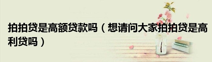 大家好,小生來為大家講解下。拍拍貸是高額貸款嗎,想請問大家拍拍貸是高利貸嗎很多人還不知道,現(xiàn)在讓我們一起來看看吧!