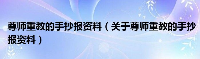 大家好,伊人來為大家解答以上問題。尊師重教的手抄報資料,關(guān)于尊師重教的手抄報資料很多人還不知道,現(xiàn)在讓我們一起來看看吧!