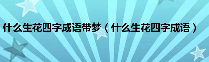 大家好,小生來為大家講解下。什么生花四字成語帶夢,什么生花四字成語很多人還不知道,現(xiàn)在讓我們一起來看看吧!