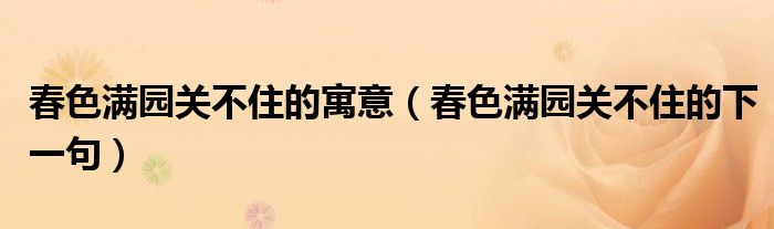 大家好,小生來為大家講解下。春色滿園關(guān)不住的寓意,春色滿園關(guān)不住的下一句很多人還不知道,現(xiàn)在讓我們一起來看看吧!