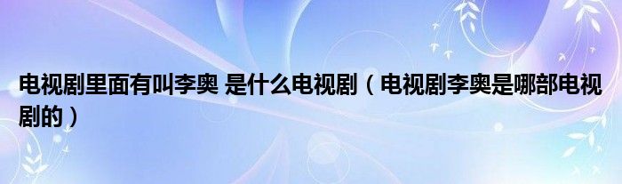 大家好,小生來為大家講解下。電視劇里面有叫李?yuàn)W 是什么電視劇,電視劇李?yuàn)W是哪部電視劇的很多人還不知道,現(xiàn)在讓我們一起來看看吧!
