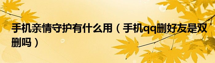 大家好,小生來為大家講解下。手機(jī)親情守護(hù)有什么用,手機(jī)qq刪好友是雙刪嗎很多人還不知道,現(xiàn)在讓我們一起來看看吧!