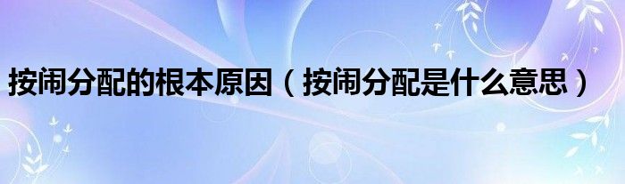 大家好,小生來為大家講解下。按鬧分配的根本原因,按鬧分配是什么意思很多人還不知道,現(xiàn)在讓我們一起來看看吧!