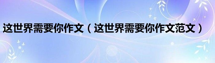 這個(gè)世界需要你,無(wú)論你是誰(shuí);這個(gè)世界需要你,無(wú)論你在哪里;這個(gè)世界需要你,無(wú)論你是貧窮還是富有。