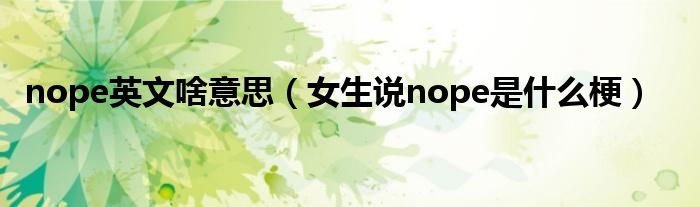 大家好,小生來(lái)為大家講解下。nope英文啥意思,女生說(shuō)nope是什么梗很多人還不知道,現(xiàn)在讓我們一起來(lái)看看吧!