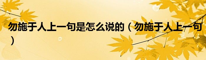 大家好,小生來(lái)為大家講解下。勿施于人上一句是怎么說(shuō)的,勿施于人上一句很多人還不知道,現(xiàn)在讓我們一起來(lái)看看吧!