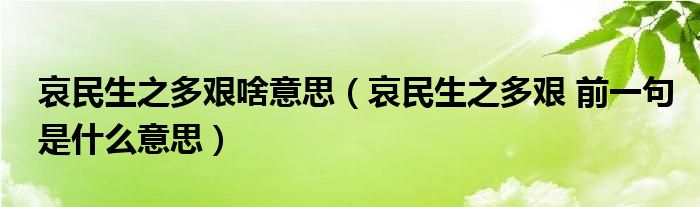 大家好,小生來為大家講解下。哀民生之多艱啥意思,哀民生之多艱 前一句是什么意思很多人還不知道,現(xiàn)在讓我們一起來看看吧!