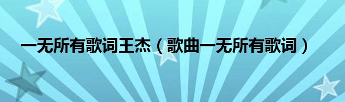 《一無所有》是王杰作詞、陳志遠作曲、編曲,王杰演唱的粵語歌曲,收錄在王杰首張粵語專輯《故事的角色》中,李壽全、郭小霖監(jiān)制,由華納唱片、飛碟唱片于1989年2月28日發(fā)行。歌曲的國語版為《是否我真的一無所有》,由陳樂融作詞。