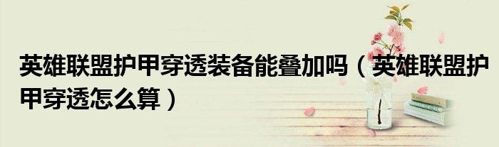 大家好,小生來為大家講解下。英雄聯(lián)盟護甲穿透裝備能疊加嗎,英雄聯(lián)盟護甲穿透怎么算很多人還不知道,現(xiàn)在讓我們一起來看看吧!