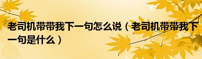 大家好,小生來為大家講解下。老司機(jī)帶帶我下一句怎么說,老司機(jī)帶帶我下一句是什么很多人還不知道,現(xiàn)在讓我們一起來看看吧!